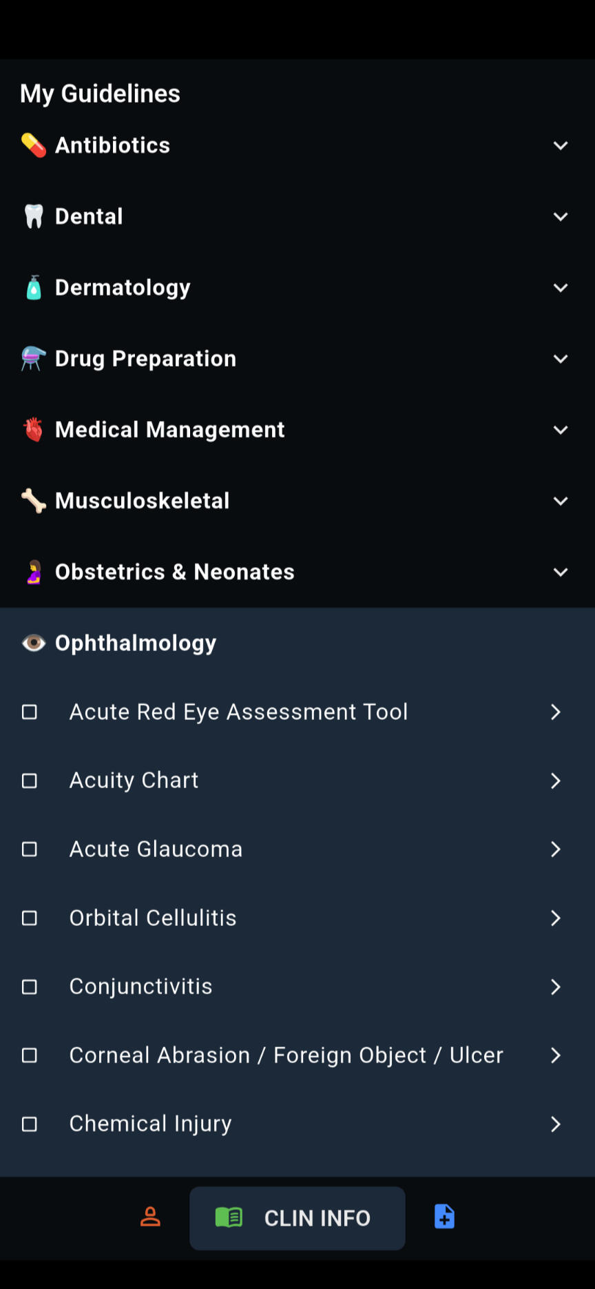 This Clinical Guidance Policy outlines the principles governing the creation, review, and use of the clinical content contained within the App.2. Scope and Intended UseThe App is intended for qualified healthcare professionals with appropriate training and regulatory registration.It is designed to support, not replace, clinical judgement.The App is not a diagnostic or prescribing authority. All decisions remain the responsibility of the clinician in charge of the patient.The App’s content is for informational and educational purposes only and must be applied in the context of local policies, available resources, and senior clinical oversight.3. Content Sources and ReviewClinical content is based on nationally recognised guidelines including, but not limited to, NICE Clinical Knowledge Summaries, Resuscitation Council (UK), Joint Royal Colleges Ambulance Liaison Committee (JRCALC), and other reputable sources.Protocols and recommendations are derived from evidence-based standards at the time of publication.Every reasonable effort is made to ensure the accuracy and relevance of content; however, medical knowledge evolves rapidly, and updates may lag behind new evidence or guidance.Users are encouraged to verify any critical information through official or current sources before acting on it.4. Updates and Version ControlThe App may be periodically updated to reflect guideline revisions, drug changes, or emerging best practice.Offline users should ensure they have the latest version downloaded prior to use in clinical settings.In the event of a conflict between App guidance and institutional, regional, or national policy, the official or local policy always takes precedence.5. Clinical ResponsibilityThe App does not assume clinical liability for patient care outcomes.Final responsibility for diagnosis, treatment, and clinical decision-making lies solely with the user.The App is not a substitute for clinical supervision or escalation. Users must seek senior review when required by competence, policy, or patient safety.The App’s drug preparation and dosing information must always be cross-checked with the most current BNF or local formulary before prescribing or administration.6. Patient Data and Record KeepingAny patient-related data entered into the App (e.g., via the Patient Card feature) is stored locally on the device and should be considered temporary field documentation.The App is not a certified Electronic Patient Record (EPR) system.Users must ensure that all clinical records created in the App are transcribed or uploaded into the official patient record system at the earliest opportunity.No patient data is uploaded, stored remotely, or transmitted by the App without explicit user action.7. Professional StandardsUse of this App does not exempt users from their professional duties under:GMC Good Medical PracticeDefence Medical Services Clinical Governance Framework (where applicable)NHS and local trust policies regarding prescribing, documentation, and safeguardingData protection regulations applicable to the jurisdiction of useClinicians must continue to exercise due diligence, professional reasoning, and maintain situational awareness at all times.8. LimitationsThe App:Does not guarantee the completeness or accuracy of its content.May not reflect local drug formularies or equipment availability.May omit rare conditions or emerging treatments.Is provided on an “as-is” basis with no warranties, express or implied, including fitness for clinical purpose.9. Governance and ContactContent governance is overseen by the App’s clinical editors, with contributions from medical professionals experienced in emergency, prehospital, and primary care medicine.